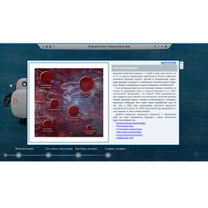 Электронное учебно-справочное пособие адресовано учащимся школ Хабаровского края и включает в себя учебный материал, а также задачи, разработанные на основе информации о фактах, событиях и явлениях, повседневно окружающих жителей Хабаровского края. Таким образом, кроме изучения информатики пособие помогает узнать новое о родном крае.